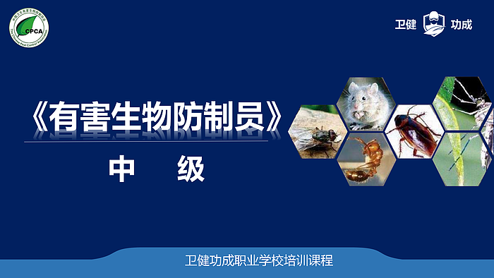 本课程以人力资源和社会保障部制定的《有害生物防制员国家职业技能标准》中对有害生物防制员中级(四级)的技能要求和相关知识要求为基础设计课程大纲,以《有害生物防制员(中级)》培训教材为课程开发依据和基础,邀请《有害生物防制员国家职业技能标准》主要起草人周小洁、魏绪强及多位行业专家参与课程讲授和录制。课程内容包括有害生物防制员职业道德和守则、生物学基础、有害生物综合防制的基础、药剂的应用基础、相关法律法规、鼠类、蟑螂、蝇类、蚊虫、白蚁及其他有害生物的识别,侵害状况的调查、治理方法及防制效果评估。本课程适用于取得本职业《职业技能初级证书》的人员;持有中等以上农业、林业、医学等专业毕业证书的人员。课程学习完毕可参加在线结业考试,成绩合格可取得培训合格证书。持有培训合格证书可报名参加同级别的专业技术水平评价考试,考试合格可获得由中国卫生有害生物防制协会颁发的专业技术水平评价证书,证书协会官网(www.cpca.cn)可查,证书查询网址http://query.cpca.cn/